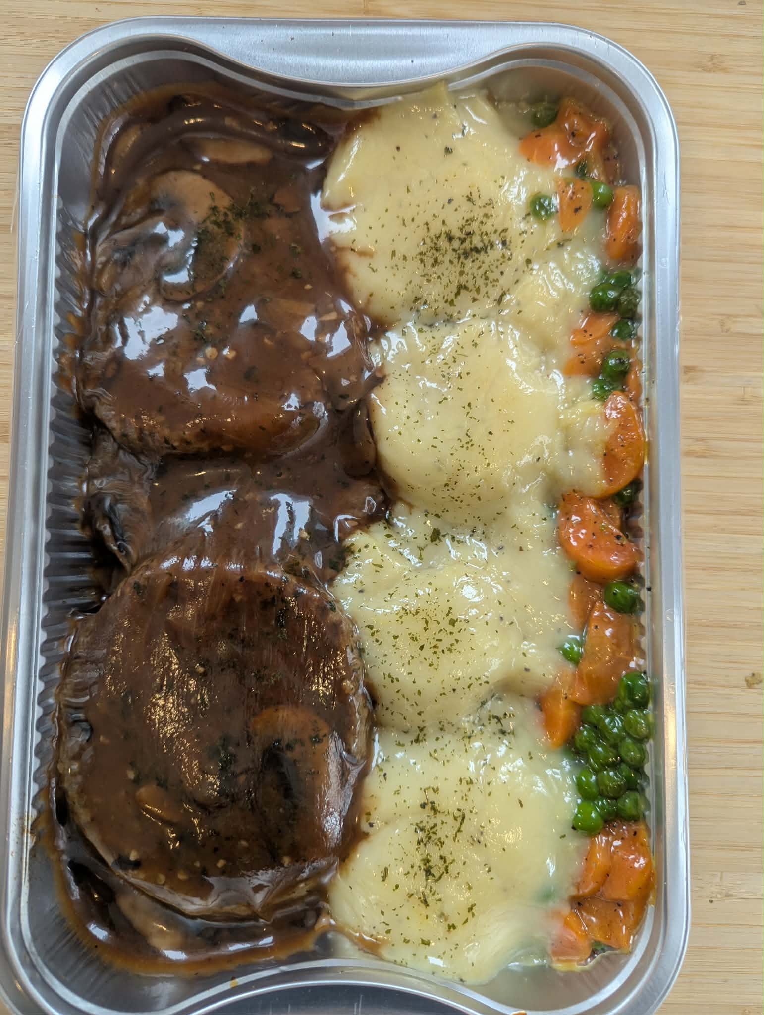 Du bon hamburger steak juteux, nappé de sauce savoureuse, accompagné comme à la maison.