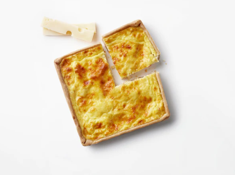 Un grand classique au jambon fumé et à la crème, dans une pâte croustillante. Un incontournable qui allie tradition et gourmandise, en toute simplicité. Pour une cuisson parfaite, préchauffer le four à 350°F. Si congelée : prévoir 20 à 25 minutes de cuisson. Si réfrigérée : prévoir 5 à 10 minutes de cuisson. Laisser tiédir quelques minutes à la sortie du four. Ingrédients : Garniture : Lait • Crème à fouetter 35% (crème, lait, carraghénane, gel de cellulose, gomme de cellulose) • Œufs • Jambon fumé (porc, sel, cassonade, nitrate, fumé) • Fromage Suisse (lait partiellement écrémé pasteurisé, sel, chlorure de calcium, enzyme bactérienne, culture bactérienne, cellulose, natamycine) • Sel • Noix de muscade. Pâte brisée : Farine de blé (gluten) • Beurre salé (lait) • Eau • Œufs • Vinaigre blanc • Lécithine de soja. Contient : Blé(gluten), Œufs, Soja, Lait. Peut contenir : Noix.